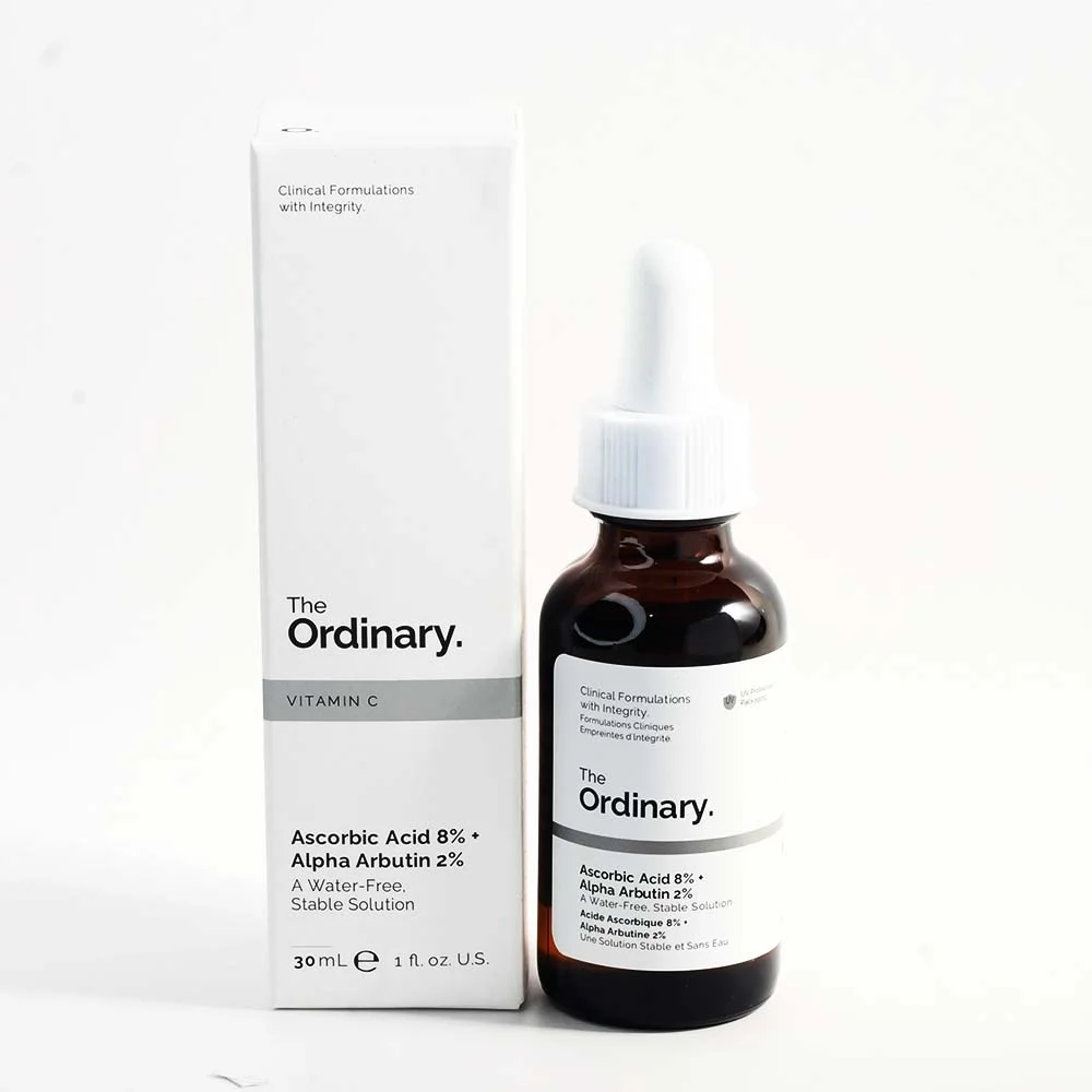 The Ordinary Ascorbic Acid 8% + Alpha Arbutin 2% একটি পানি-মুক্ত (Water-free), স্থিতিশীল স্কিনকেয়ার সলিউশন, যা ত্বক উজ্জ্বল করতে, ডার্ক স্পট কমাতে এবং শক্তিশালী অ্যান্টিঅক্সিডেন্ট সুরক্ষা দিতে সহায়ক। এটি অনলাইনে বিভিন্ন নির্ভরযোগ্য রিটেইলার থেকে পাওয়া যায়।